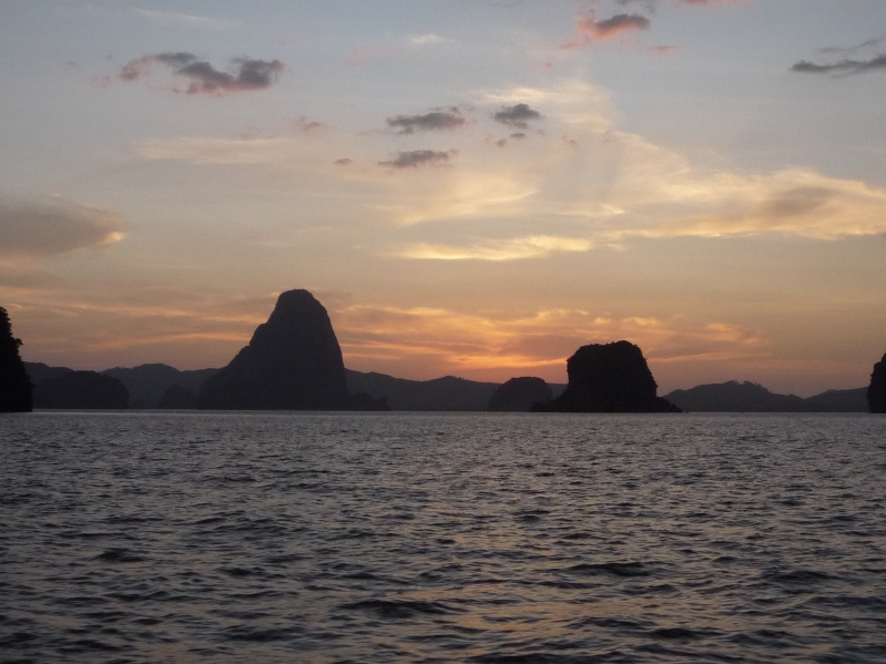 Hola de nuevo, adjunto fotos de la isla de James Bond (fijaros en lo baja que estaba la marea), del atardecer en la bahía de Phang Nga y como no, de nuestro paseo en elefante :D muy recomendable por cierto jeje :)