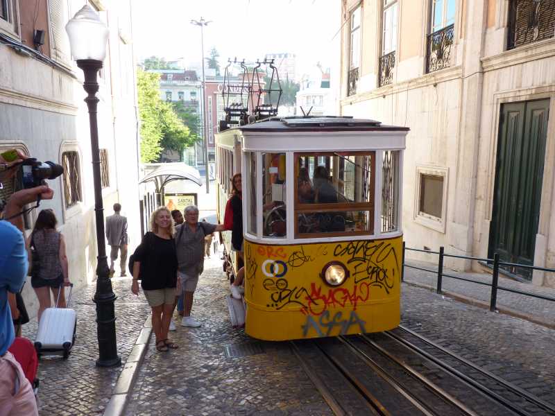 Cambio total de la excursión programada cogiendo allí mismo el metro hasta trobadores (previamente se había comprado tarjeta “7 colinas” con un precio de 5,50€ y permitiendo pillar todo el transporte público de la ciudad), allí subimos a Barrio Alto bajando hasta Chiado callejeando y desde allí descendiendo por el ascensor de St. Justa a Baixa hasta la plaza del Comercio cogiendo otro tranvia hasta Belem y de allí de vuelta hasta la parte superior de Baixa para ver el Alfama, bajandola toda andando hasta el barco.