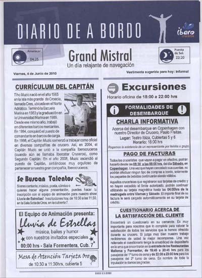 Estaba muy organizada la recepción para los nuevos cruceristas. Apenas habían colas y tras presentar la documentación correspondiente, nos facilitaron nuestras flamantes tarjetas. Tal como nos dijo el innombrable unas tarjetas maravillosas. También encontramos unos prácticos mapas de Copenhague que suelen ser facilitados por la oficina de turismo. Accedimos al barco por la cubierta 5 y fuimos rápidamente a organizar nuestras mesas de cena para estar el grupo lo más juntos posible. No hubieron problemas, sino sólo atenciones y ventajas. Posteriormente nos interesamos por el T.I. Algún combinado no entraba pero la mayoría si, las cervezas de Mahou, San Miguel, los Gin Tonic de Beefeater, vinos del día, la mayoría buenos y todo tipo de cafés, capuchinos, hierbas y licores. Es un paquete familiar que incluía a todos los miembros del mismo camarote. Lo teníamos claro antes de ir, pero con una mirada cómplice lo contratamos todos los presentes. Nos colocaron la pegatina identificativa del todo incluido en la tarjeta mágica. Debemos de felicitar a Iberocruceros porque se puede decir que ha sido un gran acierto. Bebidas de calidad sin preocuparse por si te tomas 1 ó 2. Hay personas que no le interesan y por lo tanto se puede decir que no es justo que paguen lo que no consumen.