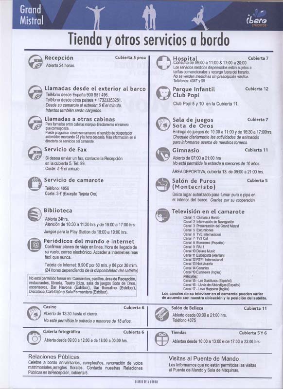 Ya en el bus nos facilitaron la hoja de las excursiones, tanto para contratarlas como para que comprobasemos los recorridos. Hice una mirada curiosa hacia los compañeros de bus y veía caras con pensamientos contradictorios al ver las ofertas del barco.