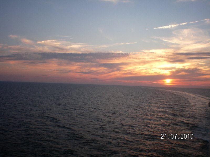 Perdona mi ausencia trini este finde ha estado bien cargadito pero de buen rollo llegue a Huelva hoy temprano pa currá la verdad es que ha sido un peazo finde espero que el tuyo haya sido igual o mejor gracias por acordarte de mi te regalo esta puesta de sol que caze desde el barco saliendo de Estocolmo espero que te guste
