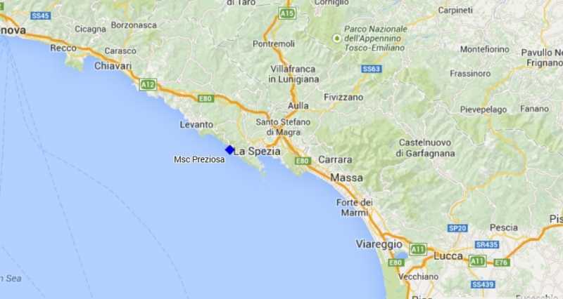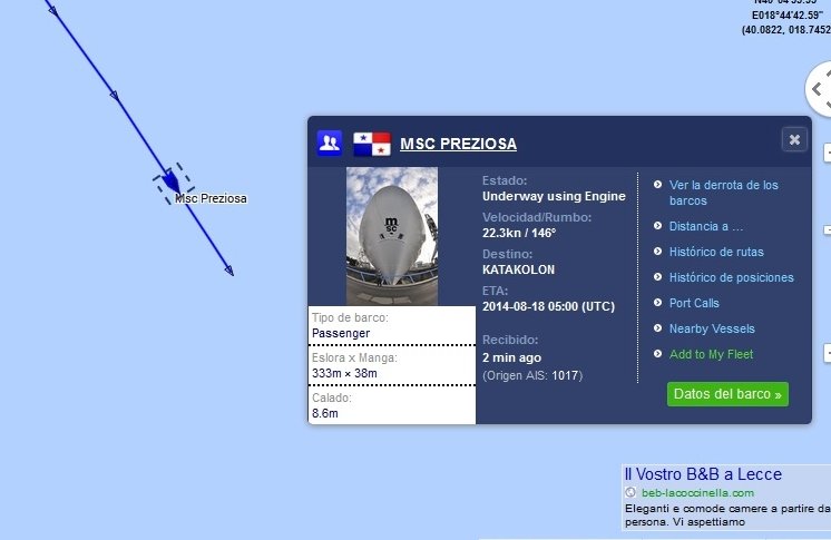 Y este es otro MSC PREZIOSA, qué está tracado en La Spezia, yo creo qué el vuestro es el qué va hacia Katakolon....