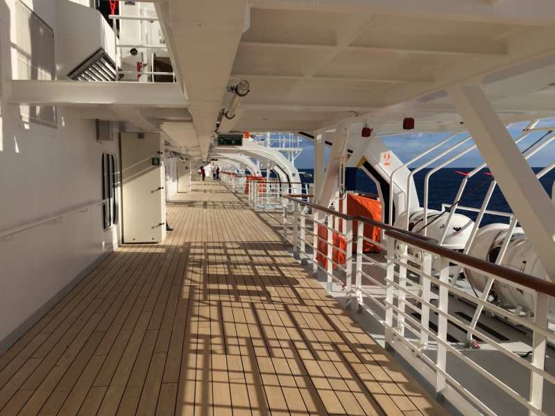 Dia de Año Nuevo con un sol radiante y una buenas temperaturas y el mar como una balsa de aceite, todo un placer de recorrer las cubiertas exteriores con este tiempo.