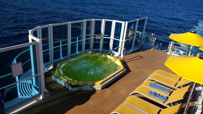 Hay varias piscinas, central, de popa y una arriba del todo, y varios jacuzzis.