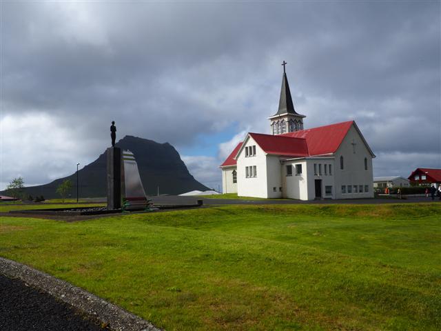 Al fondo la iglesia ortodoxa de Stykkishólmur…