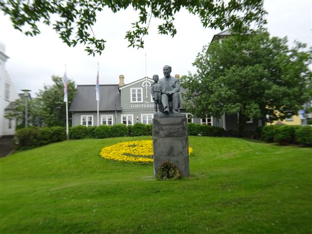 A las 16,32 h. llegamos al centro de Reykjavik. El taxi, tal y como nos dijo la guía nos cobro 20 euros y nos dejó en la calle Kirkjustræti , justo delante de la plaza Austurvöllur, al lado de Alþingishúsið y de la Cathedral Dómkirkjan. Que bien, más céntrico no podía ser!!