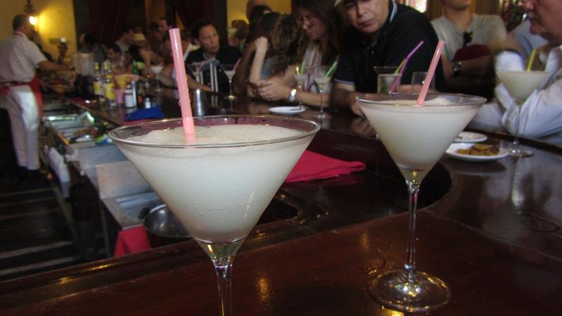 La entrada es complicada, va mucha gente, pero únicamente hacerse la foto con Ernesto, y se van a la calle, nosotros no, no somos así, nos gusta sacarle el jugo a los luagares más emblemáticos, por ese motivo pasamos un buen rato dentro del local, degustando sus maravillosoa daikirys, estaban muy ricos y hasta nos pusieron unas tapas, qué de trataba de plátanos asados en lonchas, no estaban malos, je je je