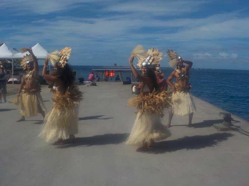 A la bajada del tender nos obsequiaron con estas danzas polinesias, nos encantan!!