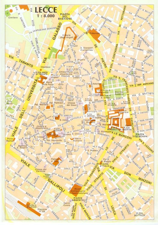 Lo prometido es deuda...abajo a la izquierda esta la estacion de tren y desde alli saliendo por la calle viale oronzo ya llegas al fondo a la izquierda la plaza duomo y desde alli ya te haces el itinerario.