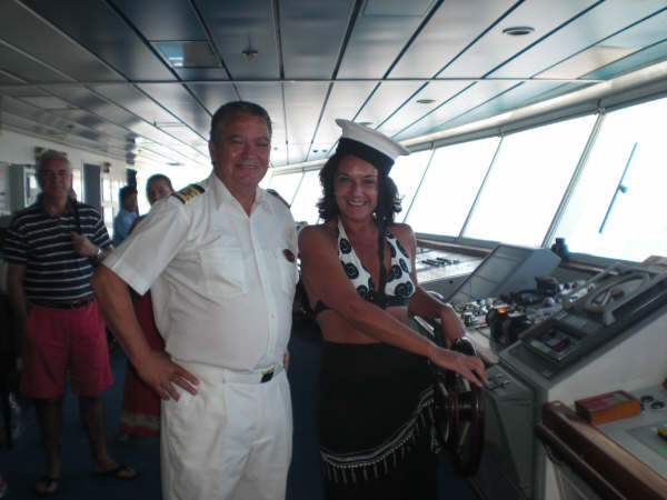 En el Oceam Dream...Hoy es la noche del BLANCO Y NEGRO....y sí, la mayoría de los pasajeros seguimos el consejo!!! A las 17.30 todos a bordo!!!
