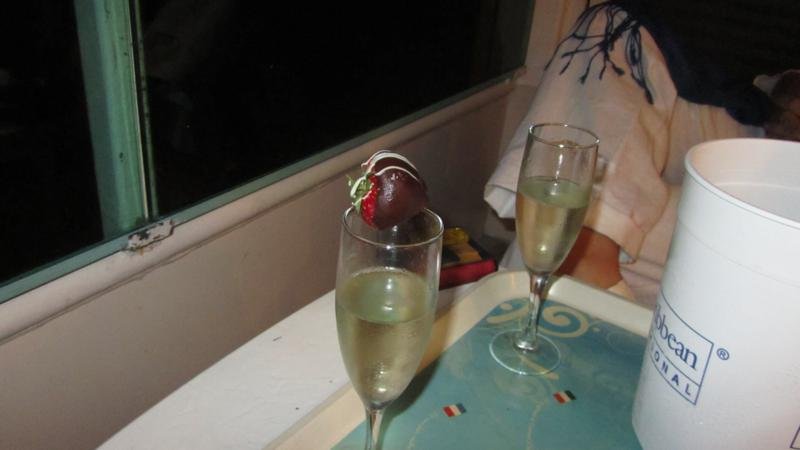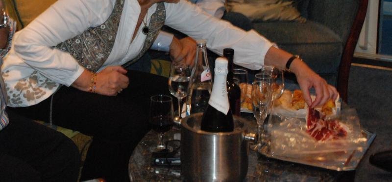 Lo de subir botes de refrescos y botellas de agua si que lo hacíamos en los puertos pero nunca se nos había ocurrido meter vino o champan porque lo retenían al subir. En esta ocasión celebramos el aniversario asi que estaría bien subir alguna botellita (teniendo en cuenta los altos precios del alcohol en el barco...)