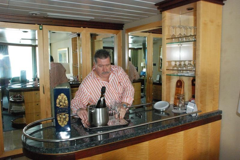 Bonitas fotos de la Royal Suite del Celebrity Constellation y que buenos manjares sobretodo el jamón que vosotros aportabais, mas los Pum y los canapés que nos preparo el mayordomo que la verdad que tenia muy mala leche y era bastante cabroncente hablando en buenas palabras![]()