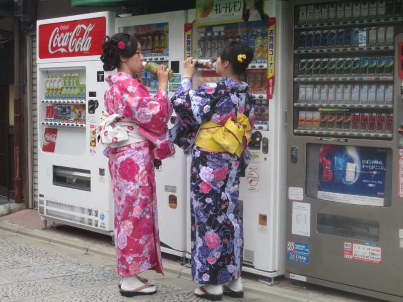 esta de moda entre los turistas, sobretodo chinos y coreanos, alquilar un kimono por unas horas y pasearse por el barrio, sintiendose gheisa por unas horas...