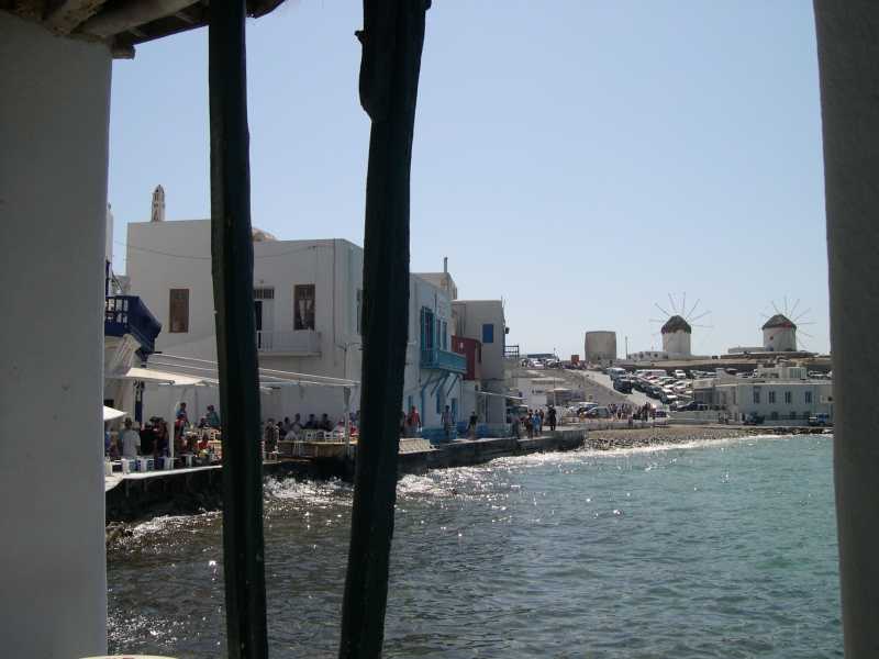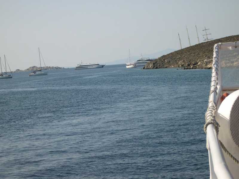 Dispongo de varias guias de este trayecto, guias en pdf, que al las quiera solo las tiene que pedir. Como ya os habia dicho conocemos casi la totalidad de las escalas, y quiero empezar, ya que es cierto Lucia la exzcursion a Delos merece la pena, diciendo que la la hicimos por nuestra cuenta. No es dificil, solo hay que procurar bajar de los primeros del barco a fin de coger el transfer que ponen las navieras (pagando eso si) y llegar de los primeros a la ciudad. Empezar a andar rapido hacia la bocana del puerto viejo, donde estan los ferrys que hacen el trayecto a Delos, bordeareis el paseo maritimo y pasareis por delante del simbolo vivo de Mykonos, su mascota, que va de puesto en puesto de pescado. Podeis comprar en el trayecto los billetes del Ferry, que cuando nostros fuimos salia a las 9 de la mañana, para llegar los primeros a Delos.