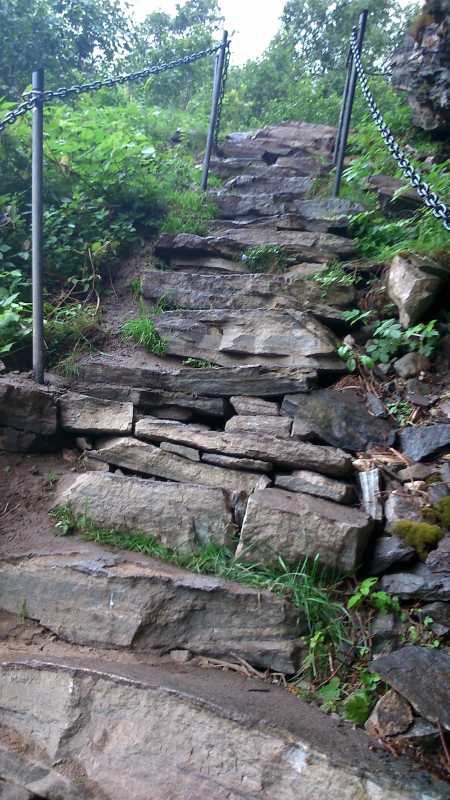 al bajar por estas escaleras naturales protegidas por esta baranda en forma de cadena.... Hay algún tipo de peligro??? esta la suficientemente separado del precipicio???