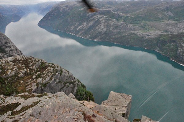 Parece un poco raro que se salga desde el descampado, sobre todo cuando el primer correo que nos mandó la empresa decía que se salía del helipuerto de Sola que está como a 16km. Yo desconfié al principio, pero nos arriesgamos y el viaje es una pasada. Sobrevuela, el fiordo de Lyse, el púlpito y la ciudad, durante 30 minutos.