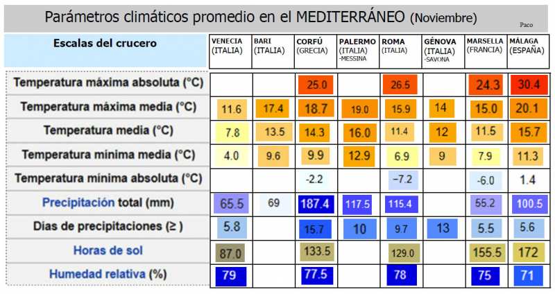 Estas son las opciones barajadas en este momento para las diferentes escalas del crucero: