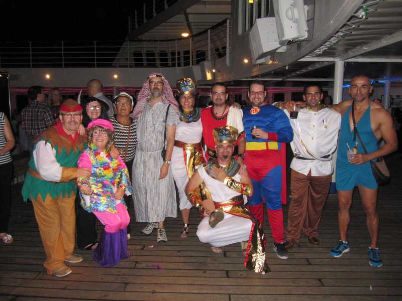 En primer lugar comentaros que me tomó esta labor como una mera forma de ayudar al grupo aportando mi experiencia en cruceros anteriores que al igual que en este, organizamos un nutrido grupo a través de un foro y todos salimos encantados. COLLADO nos aporta su experiencia directa en este mismo barco y me consta también, que además de su espíritu aventurero, una buena praxis en cuestiones de organización. Por cierto COLLADO... el disfraz de SUPERMAN ¿no le quedaría mejor al de la derecha según se mira la foto?