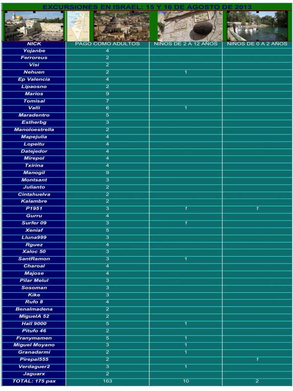 Con estas visitas terminamos nuestra excursión a Jerusalén y Belén. Si queda tiempo visitaremos alguna cosa más, pero eso será posible una vez estemos allí y dependiendo de cómo vayan las visitas. Se ha sugerido acercarnos al