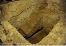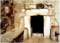 Iglesia de la Natividad está ubicada sobre esta cueva en Belén. La iglesia data mayormente de la construcción del siglo VI del Emperador Justiniano, pero adiciones y modificaciones fueron hechas durante la Edad Medía. En la imagen podemos observar la entrada a la Cueva en la Basílica de la Natividad.