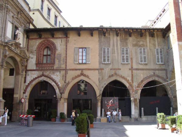 El palacio está construido en estilo gótico, todo en ladrillos, al comienzo del siglo XIV. El edificio que se ve ahora es el resultado de una reconstrucción anterior, debida a un incendio que destruyó una parte del palacio; de todas formas, la reconstrucción resulta una mala copia del grande palacio antiguo. En el patio interior del palacio, hoy está la Plaza de la Municipalidad, con la “Escalera de Honor” , una escalera monumental con cúpola.