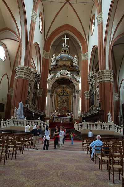 Esta es la iglesia más antigua y grande de Bologna , además de ser una de las iglesias más grandes del mundo. Se encuentra en la Plaza Mayor, y durante largo tiempo fue utilizada para varias finalidades, como lugar de eventos, tribunal, lugar público de encuentro para los ciudadanos. A su interior se conservan preciosas obras de artistas famosos, como el Parmigianino, Giulio Romano y Masaccio.