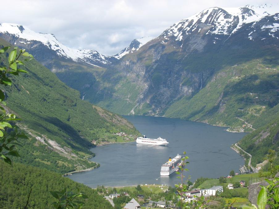 Pd: Publico fotos desde el mirador de Flydalsjuvet (al fondo se ven el Costa y el MSC) y de la cascada