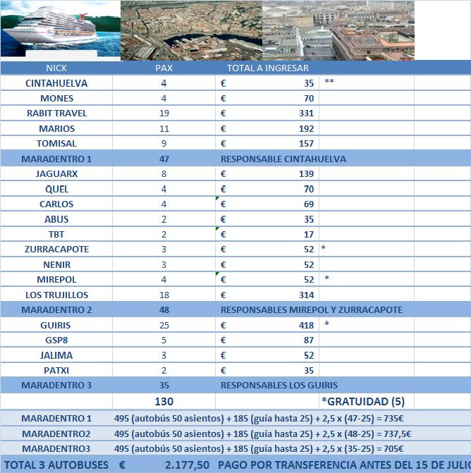 Para la de Savona, tenéis que contactar con Vero, ya que mi familia no iremos.