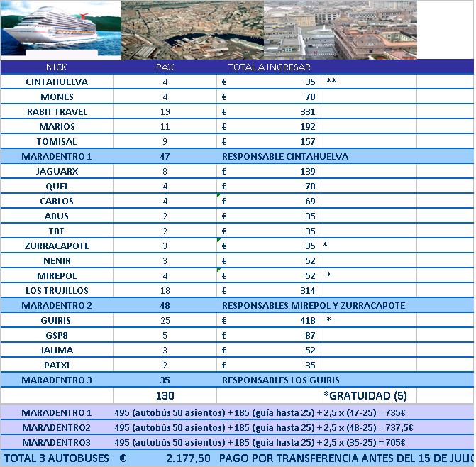 A parte de esto, os envío un privado con mis datos para la excursión de Roma en la que sí que compartiremos autocar.