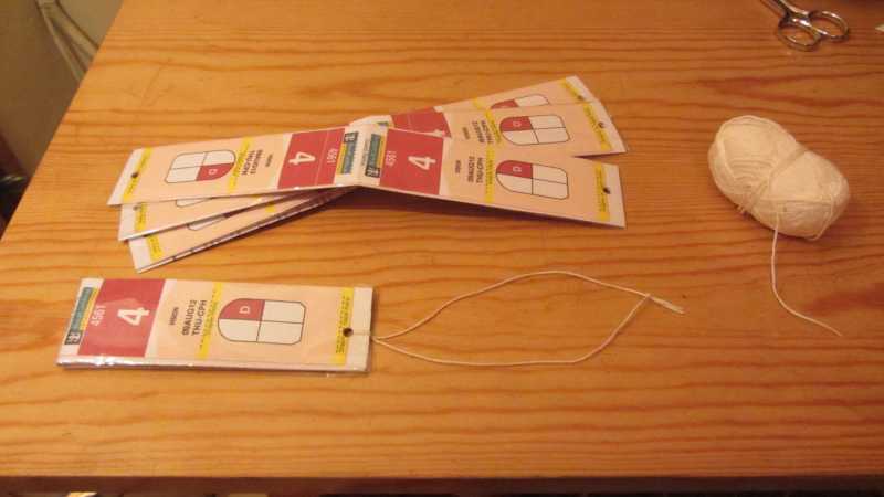 Idea para no tener que llevar ni celo ni grapadora. Tan sólo un par de agujeros y un trozo de cordón y si las plastificamos con celo ancho mejor por si llueve para que no se rompan.