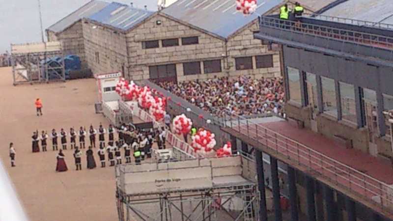 Quiero que sepais que la llegada y sobre todo la salida de Vigo ha sido la mas bonita que he vivido en todos los cruceros que he realizado. Los gallegos nos recibieron con bandas de musica, con bailes tipicos de la tierra, sus mujeres haciendo encaje de bolillos, segun ibamos paseando por sus calles ibamos viendo todas estas maravillas y si todo esto fue bonito la salida del barco fue lo mas, ¿os acordais de vacaciones en el mar, cuando iba todo el mundo a despedir al barco y desde el barco se saludaba con pañuelos? Pues todo eso lo tubimos, los pelos se te ponian de punta de verlo, y unido a esto los gaiteros estaban a pie de barco amenizando la marcha con sus gaitas, fue divino.
