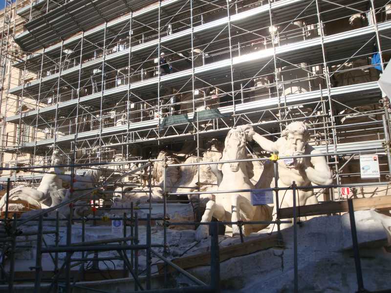 Te dejamos esta página web en donde según sus noticias es que el Monumento de la Fontana de Trevi estará acabada en el primer trimestre del 2.015...