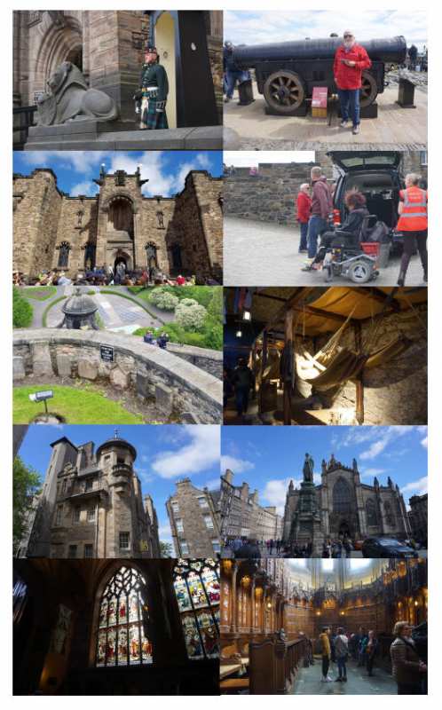 visita al Castillo. Antes de traspasar las puertas de la fortaleza Isabela me informa de la posibilidad de utilizar en el servicio gratuito que presta el Castillo de Edimburgo para visitantes con problemas de movilidad. (Tienen vehículos en los que se puede llevar una silla de ruedas incluso). Me evito las pendientes de los últimos tramos , tanto a la subida como a la bajada , ya que hubiera sido “dura” por no estar todavía en buenas condiciones físicas después de una doble fractura de tobillo.