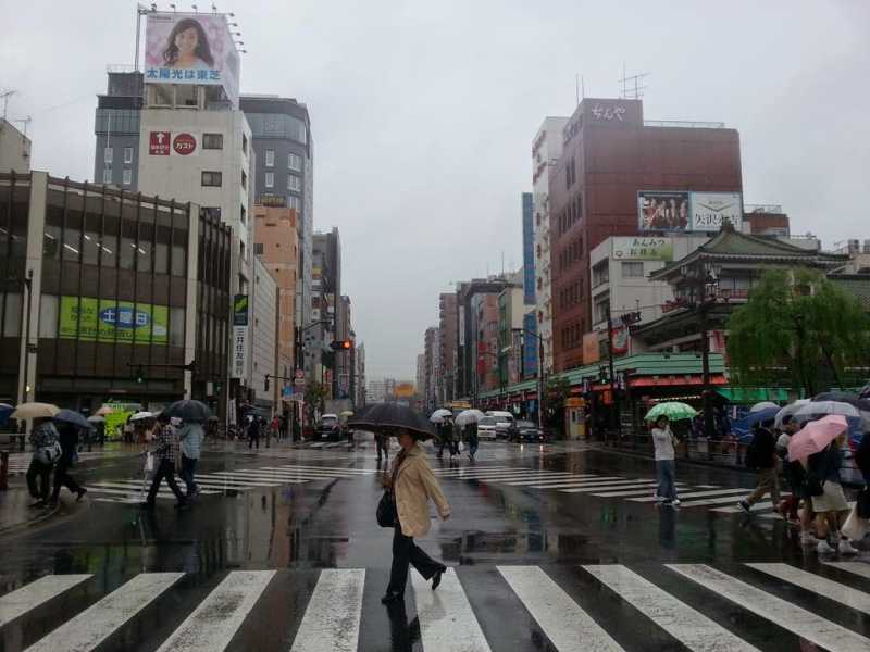 El barrio de Asakusa es especialmente tradicional, aunque no conserva el tipismo de cuando era el centro de ocio de antes de la Guerra. La estructura del Skytree, uno de los miradores más altos de la capital nipona es visible tras la neblina al fondo.