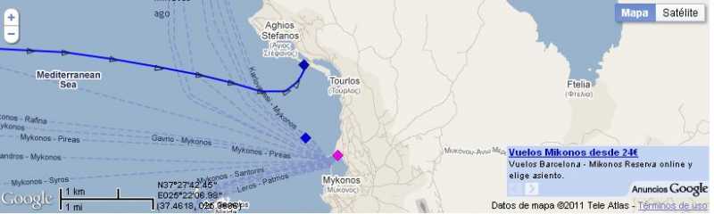 O yo miro mal o hoy tampoco está en Mikonos, está en Aghios Stefanos