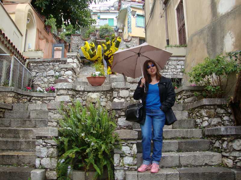 La escala de tercer día era Mesina y decidimos contratar el transfer de Royal a Taormina. Amaneció con lluvia y me arrepentí de haberlo contratado pero lo cierto es que pasamos un día agradable aunque con paraguas.