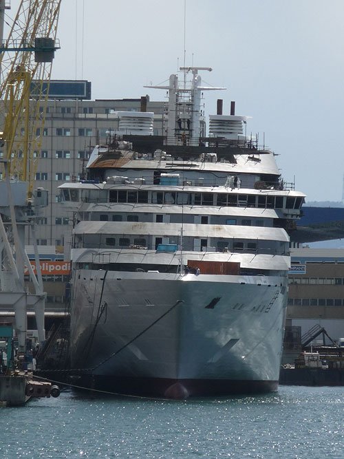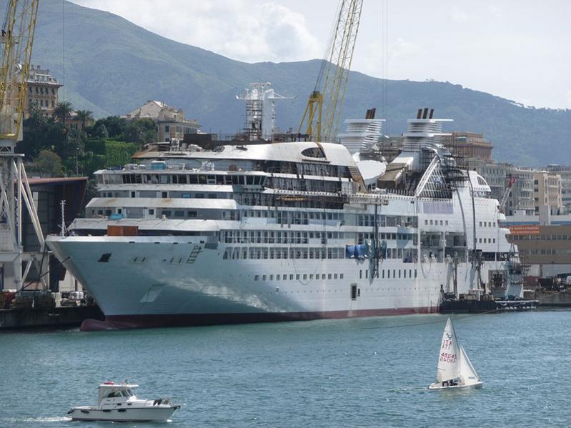 Este fin de semana, pasé por Genova. Entre mucha cacharrería fina, ferries destatelados, la nueva joya del momento, que es el nuevo barco de Seabourn brillaba con luz propia en el astillero genovés donde se está construyendo. A la espera de la inauguración más ansiada, los trabajos siguen a buena marcha.